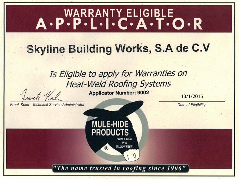 Greenflex es una empresa certificada como Contratista Aprobado por los fabricante para los sistemas que se especifican. Todos los sistemas de cubierta se ofrecen e instalan en cumplimiento con estándares de calidad y seguridad internacional como son Factory Mutual, Underwriters Laboratories y OSHA.